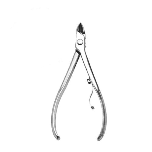 e autoclave. Possui cabo deslizante e corte curvo, facilitando um corte
